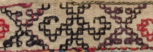 Notes: Close match to Holbein portrait depictions; illustrates how embroidered textiles were actually constructed.